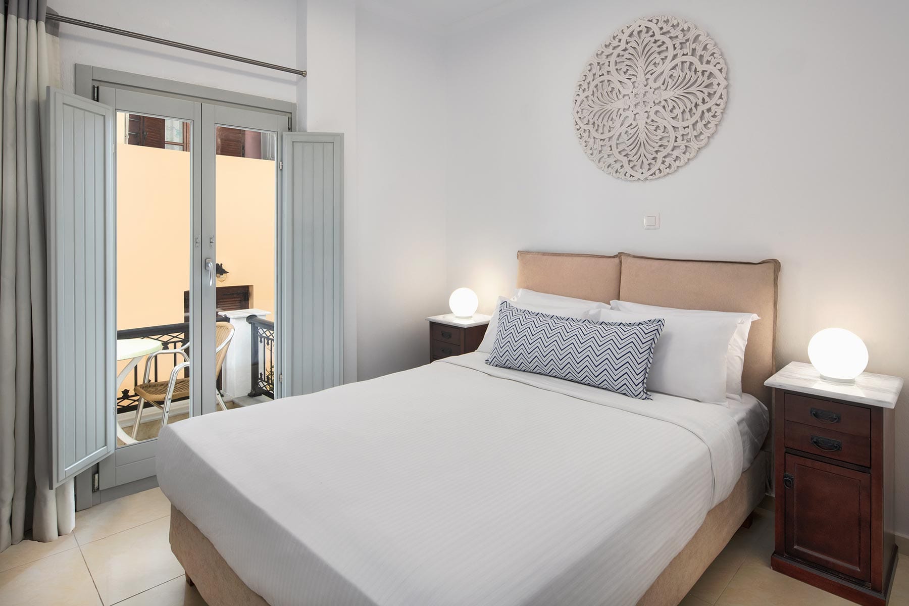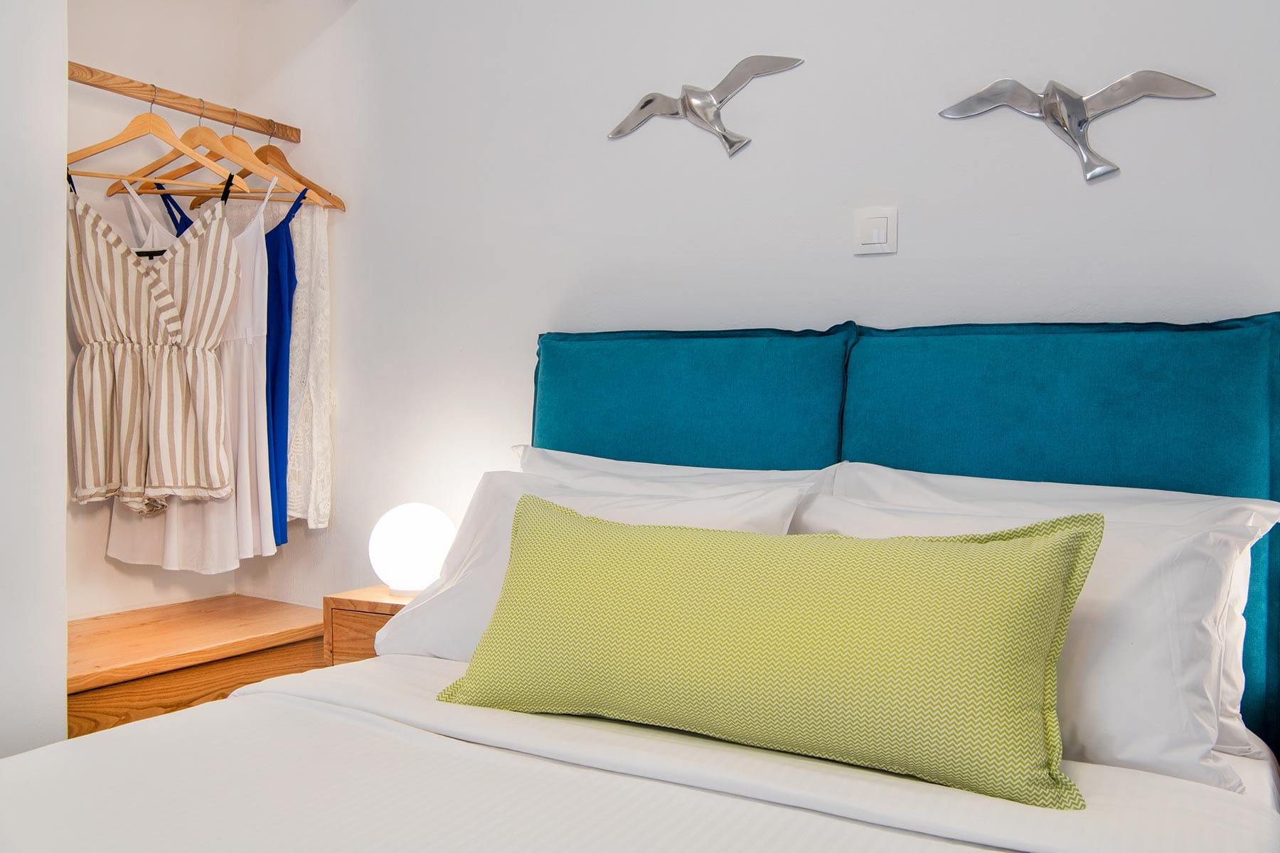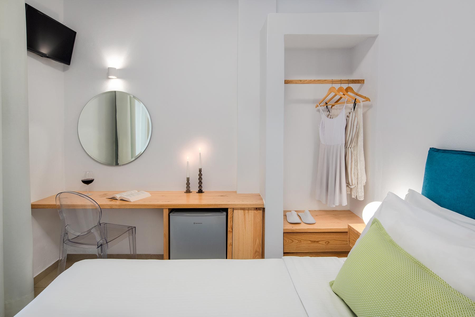 Couples seeking a comfortable and romantic stay in Santorini find in the Double Room of Villa Soula the holiday getaway they were looking for. Inviting décor with traditional touches and a refreshing summer vibe, ample natural light and relaxing tranquillity are the highlights of the Double Room, which features a double bed, a private bathroom with shower and a fully furnished balcony. Here, holidays for two are an irresistible affair of relaxation and romance, a truly unforgettable holiday experience.